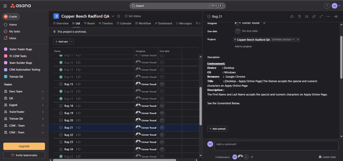 Asana Tickets